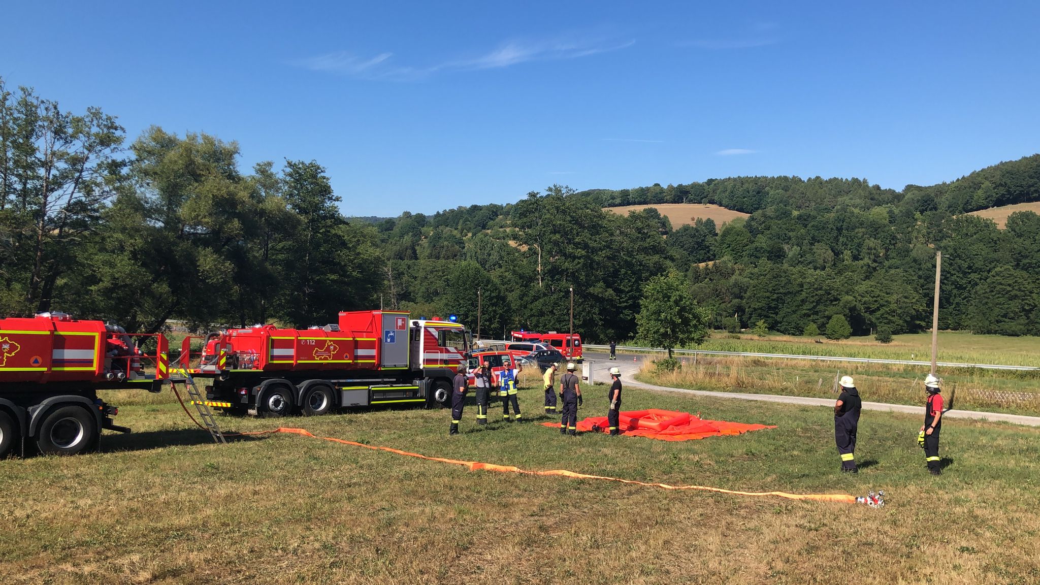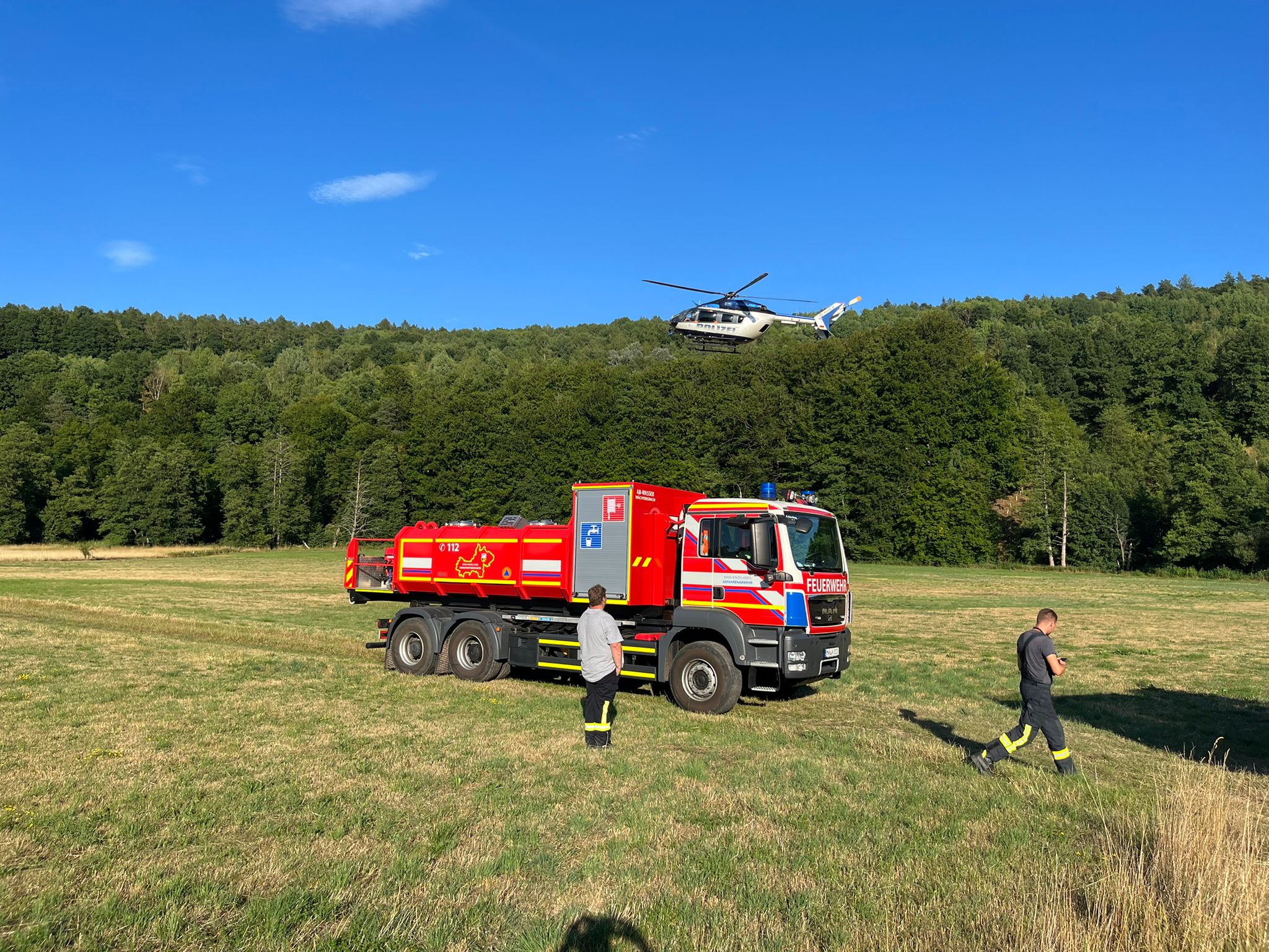 Am Mittwochnachmittag 03.08.2022 um 16:04 Uhr wurde die Feuerwehr Aufenau mit dem Wechselladerfahrzeug und dem Abrollbehälter Wasser mit dem Einsatzstichwort “F 1 – Flächenbrand zwischen Mottgers und Altengronau“ zur Unterstützung der Feuerwehren in Sinntal nachgefordert.
